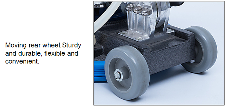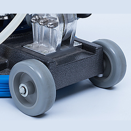 Bánh xe của máy chà sàn đơn làm bằng kim loại chắc chắn, xoay linh hoạt theo điều khiển của người sử dụng. Bánh xe được bọc cao su chống trơn trượt. Máy chà sàn đơn VClean SD-002 có thể di chuyển dễ dàng trên những địa hình sàn không bằng phẳng, có nhiều ngóc ngách và chướng ngại vật.